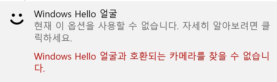 'Windows Hello 얼굴과 호환되는 카메라를 찾을 수 없습니다'로 윈도우 헬로(얼굴 인식) 불가능할 시